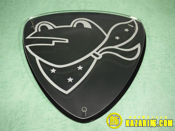 2枚重ねのデラックスプレート(飾り台)です。 上板は、航空自衛隊部隊マークのデザインを透明な板に、KAZARI隊.COM 飾人(=しょくにん)が薄彫りしています。 下板は、黒色の板を上板より全体にやや大きく切り出しています。 下板の黒い板には、お客様のお好みの演出で、色加工等(例として、空の写真など貼る。和紙など貼る。等)をしていただければ、 より一層、雰囲気のあるプレート(飾り台)に仕上がることまちがいなしです!! もちろんそのままでも上板のモチーフが黒い板に映り込んで迫力ある飾り方ができます。 組ネジとスペーサーで航空自衛隊部隊マーク(上板)と黒色の板(下板)を1cmのスペース(高さ)を設けることにより、 プレート(飾り台)に立体的な高級感をもたせました。お客様の大切な空間を最高級かつ豪華に飾っていただくことができる一品です。 板の材質は高級アクリルを使用しております。 インテリアの一部としてお楽しみください。また、1/72 航空自衛隊戦闘機模型のディスプレーにご使用いただける飾り台です。 お手軽に作品の迫力を増し、高級感を演出することができます。もちろん、お客様の工夫次第で他のスケールへの流用も可能です。 <第301飛行隊> 新田原基地をベースとし、現在は数少ないF-4EJ改を運用する部隊。部隊マークは百里基地所属時代からおなじみのカエル(筑波のガマ)。