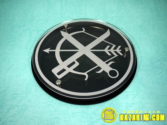 2枚重ねのデラックスプレート(飾り台)です。 上板は、航空自衛隊部隊マークのデザインを透明な板に、KAZARI隊.COM 飾人(=しょくにん)が薄彫りしています。 下板は、黒色の板を上板より全体にやや大きく切り出しています。 下板の黒い板には、お客様のお好みの演出で、色加工等(例として、空の写真など貼る。和紙など貼る。等)をしていただければ、 より一層、雰囲気のあるプレート(飾り台)に仕上がることまちがいなしです!! もちろんそのままでも上板のモチーフが黒い板に映り込んで迫力ある飾り方ができます。 組ネジとスペーサーで航空自衛隊部隊マーク(上板)と黒色の板(下板)を1cmのスペース(高さ)を設けることにより、 プレート(飾り台)に立体的な高級感をもたせました。お客様の大切な空間を最高級かつ豪華に飾っていただくことができる一品です。 板の材質は高級アクリルを使用しております。 インテリアの一部としてお楽しみください。また、1/72 航空自衛隊戦闘機模型のディスプレーにご使用いただける飾り台です。 お手軽に作品の迫力を増し、高級感を演出することができます。もちろん、お客様の工夫次第で他のスケールへの流用も可能です。 <第6飛行隊> 最後の「F-1」支援戦闘機運用部隊でしたが、2006年に「F-2」への機種更新が完了しました。 基地の北方にある高千穂の「天の逆鉾」と、「神武東征神話の弓」をデザインした、第6飛行隊のマークです。